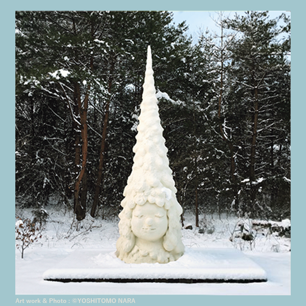 N's YARD outdoor sculpture, "Miss Forest / Thinker" winter scenery was taken by Yoshitomo Nara.